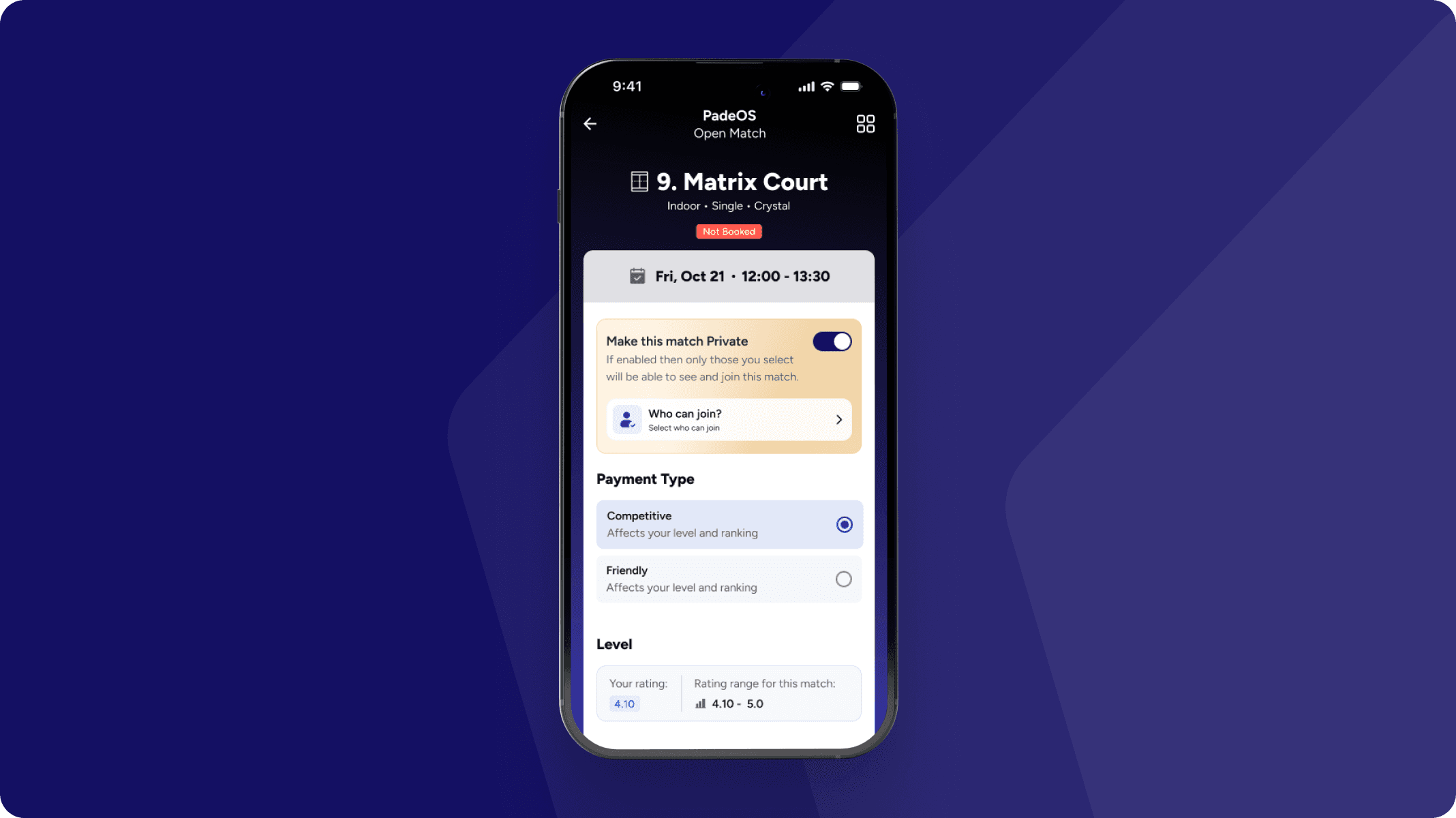 Encourage more padel matches with Open Matches, where players can easily create or join games based on skill level and availability. Whether for competitive play or a casual rally, this feature helps players connect and enjoy more matches effortlessly.