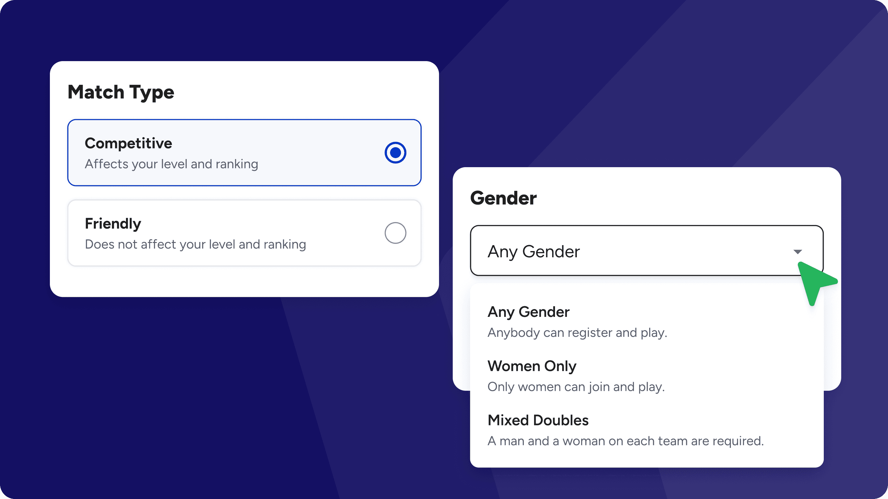 Inclusive Matchmaking – Allow flexible gender options to expand participation and create diverse matchups.