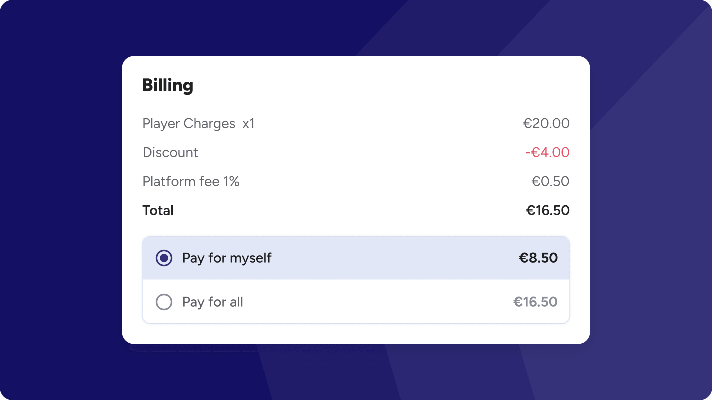 Players can choose to pay for their own share or cover the full booking amount for the group. Payments can be made using various methods, including wallet credits, ensuring a seamless and hassle-free experience.