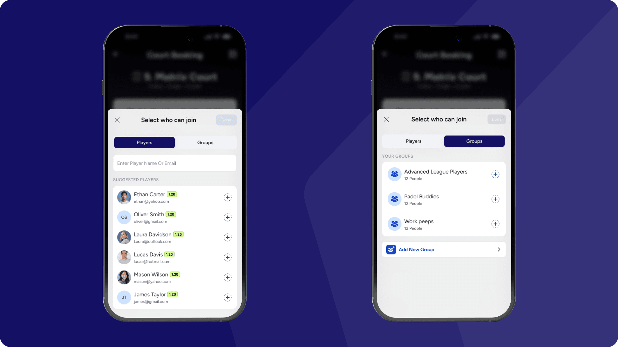 Create Groups & Invite– Players can create groups inside the app and invite an entire group with one tap. It makes organising recurring games effortless and helps clubs build stronger player communities.