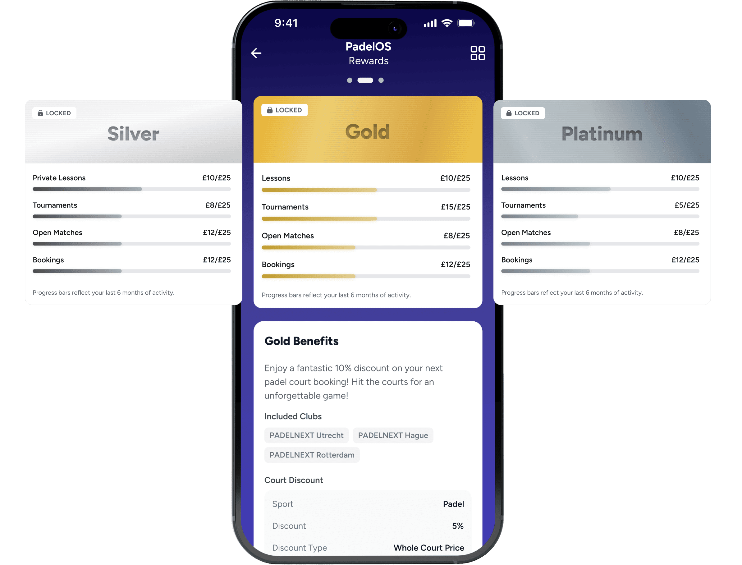 Turn your club membership into a gamified journey. With real-time progress bars and transparent benefit lists, your players are always one booking away from their next reward.