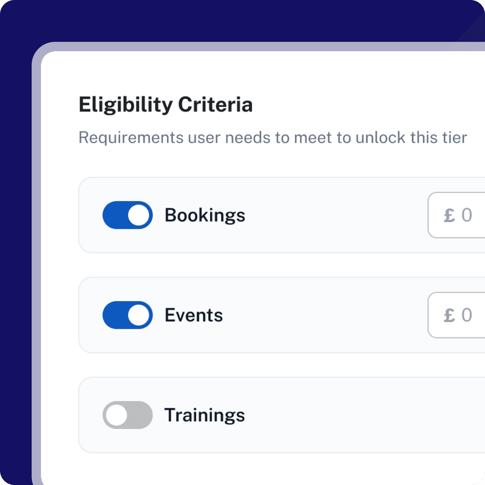 You decide exactly what drives loyalty. Use simple toggles to choose which revenue streams from court bookings to private lessons contribute to a player’s status. Edit spending requirements to protect your margins while rewarding your most active members.